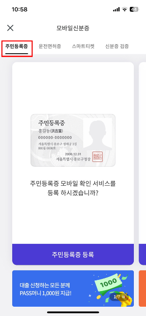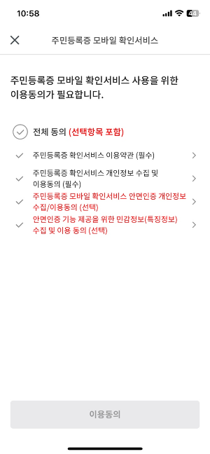 2. 앱 중간의 주민등록증 모바일 확인 서비스